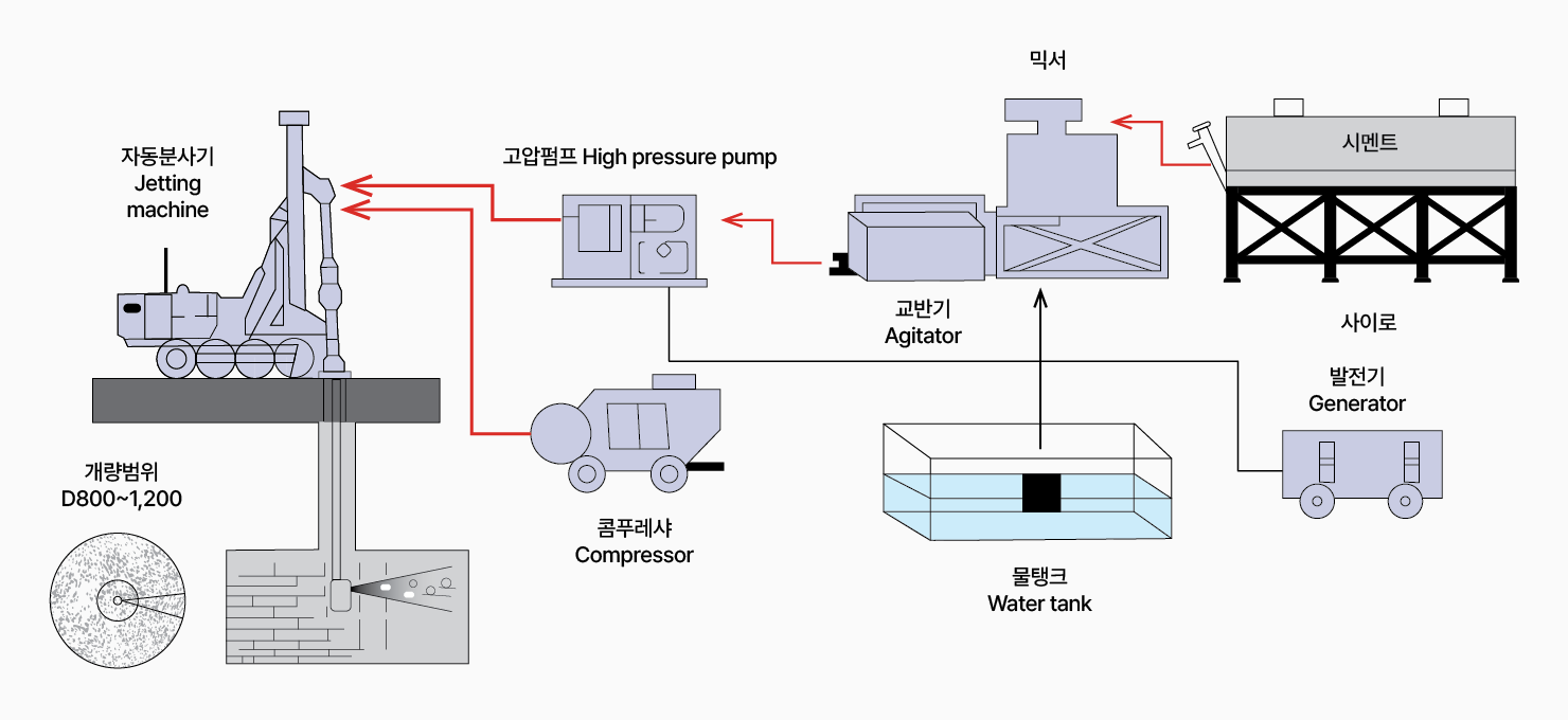 | 주입방식 | 2중관, 고압 2개 노즐분사 |